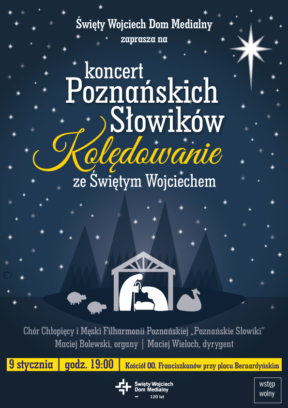 Z okazji jubileuszu 120-lecia spółki Święty Wojciech Dom Medialny, 9 stycznia, o godzinie 19.00, w kościele oo. Franciszkanów przy Placu Bernardyńskim, odbędzie się uroczysty koncert „Kolędowanie ze Świętym Wojciechem”.