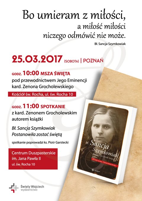 Proboszcz parafii pw. św. Rocha w Poznaniu oraz Wydawnictwo Świętego Wojciecha serdecznie zapraszają na uroczystą Mszę św. pod przewodnictwem JE ks. kardynała Zenona Grocholewskiego, która odbędzie się 25 marca o godzinie 10:00.